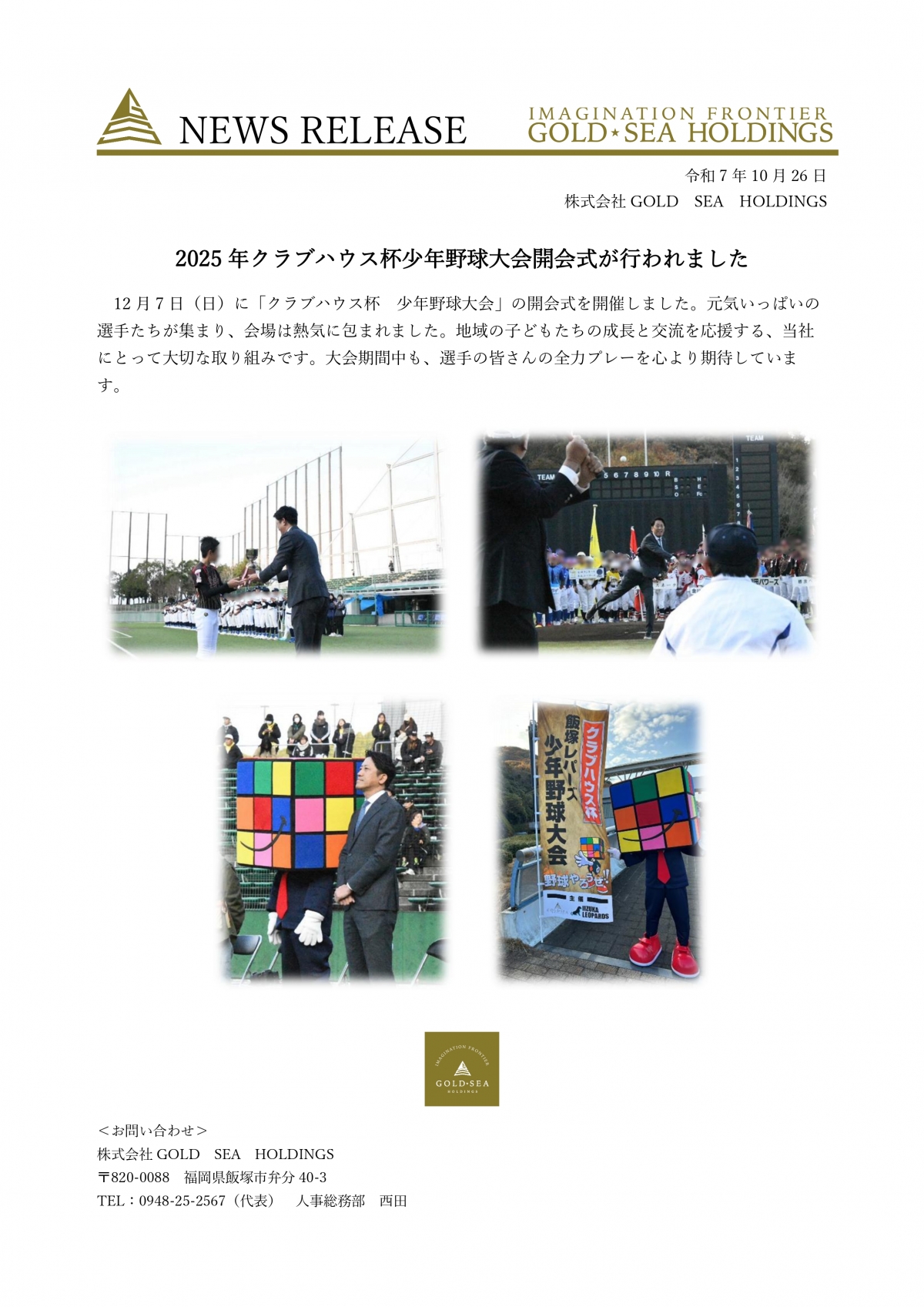 2025年クラブハウス杯 飯塚少年野球大会開催!