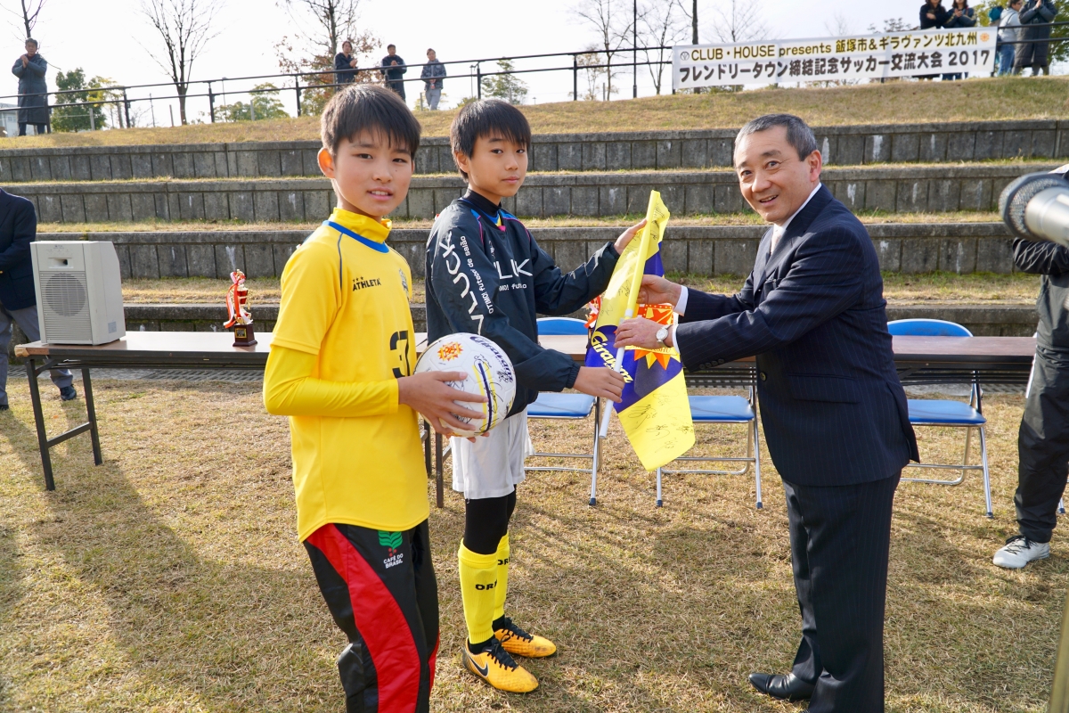 2017/11/27 弊社グループ企業CLUB HOUSEが協賛させていただきました、「CLUB HOUSE Presents 飯塚市&ギラヴァンツ北九州フレンドリータウン締結記念サッカー交流大会」が、11月25日(土)に飯塚市吉北健康の森公園で開催されました。